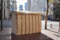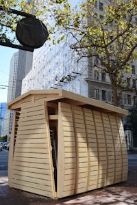 Chime is a multi-player percussion instrument for public use. Steel tube chimes sound when the outer panels are pressed activating pendulum mallets inside. Crowd sourced melodies and lively interactions arise in the public space at a Chime installation. This work has undergone several phases, featured at San Francisco’s Market Street Prototyping Festival in 2015 & 2016, Palo Alto’s Civic Plaza, Yerba Buena Center for the Arts, and downtown Houston.